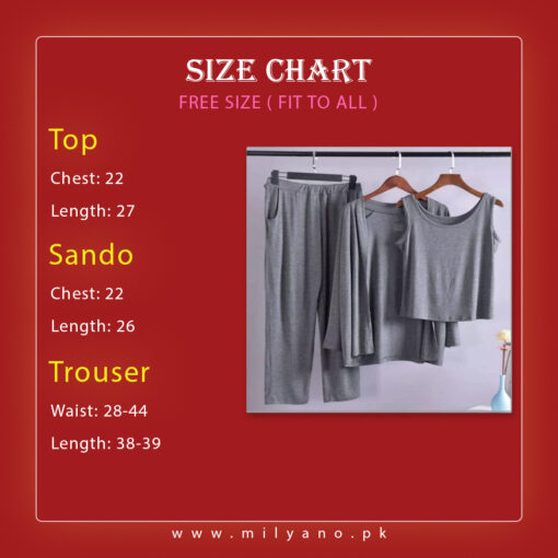 Three-Piece Night Suit for Women – Long Sleeve, Vest, and Loose Trouser.